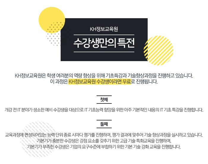 No.1 국내 최대의 취업 실적을 보유한 KH정보교육원에 오신 것을 환영 합니다.