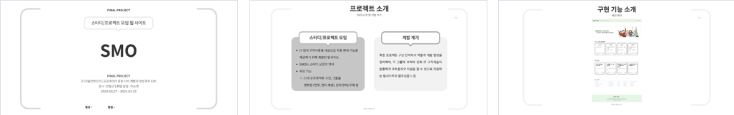개요 - ‘스터디 모임(약칭 SMO)’는 IT 업계 구직자들을 대상으로 각종 편의 기능을 제공하기 위해 개발된 웹 플랫폼