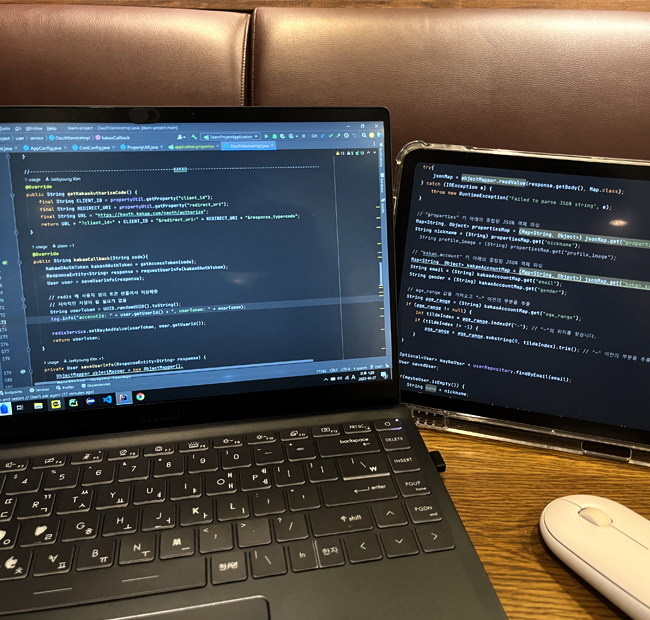 같은 수업을 듣는 동기들이 모두 친절하고 열정적이어서 모르는 내용에 대해서 서로 물어가면서 돕고 알려주고 했던 것 같아요! 실력 좋으신 분들이 워낙 많으셔서 어깨 넘어 슬그머니 보면서 동기들에게도 많이 배웠습니다.