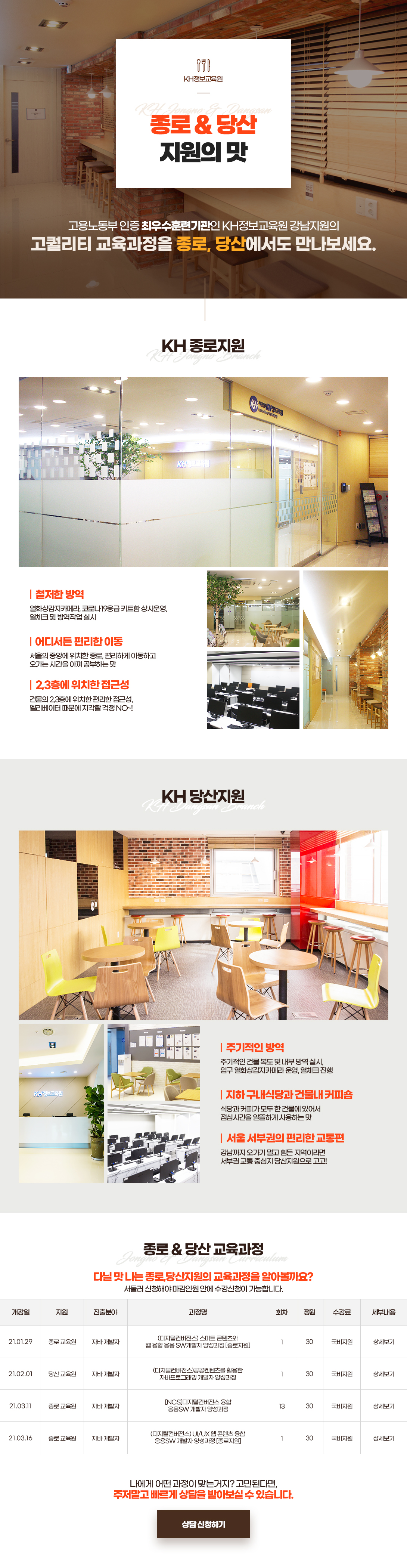 KH의 전 과정은 NCS(국가교육표준화)기준을 준수하며 최대 100% 무료 국비지원을 받으실 수 있습니다.