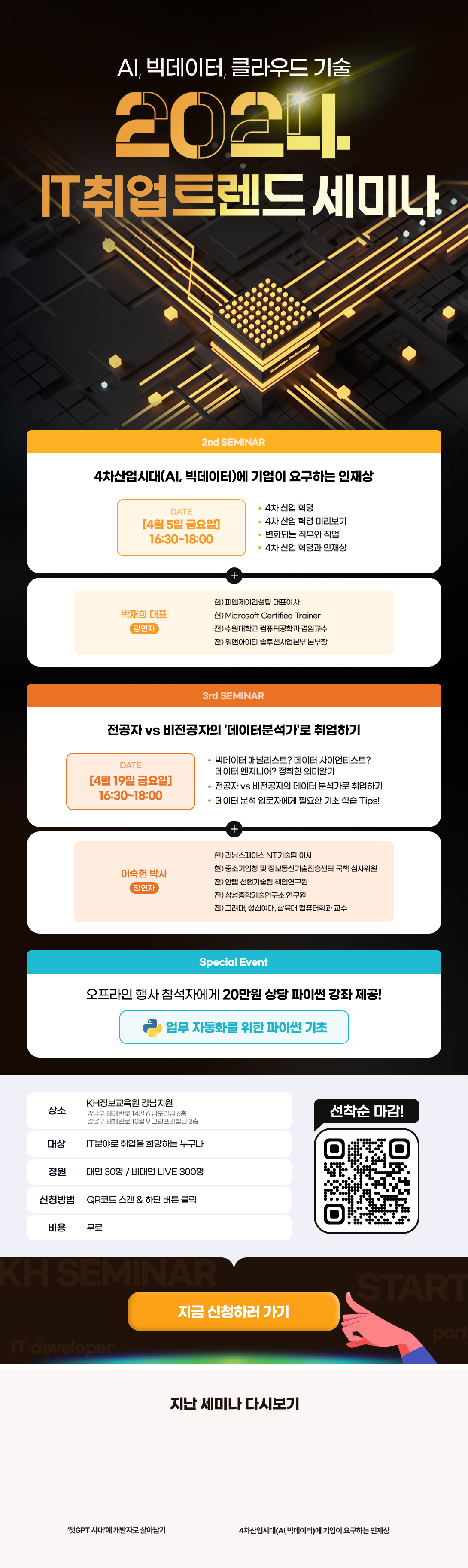 수료생과 함께하는 KH정보교육원의 다양한 소식을 만나보세요.